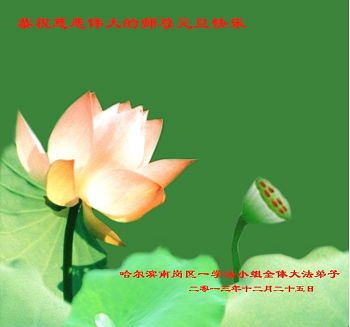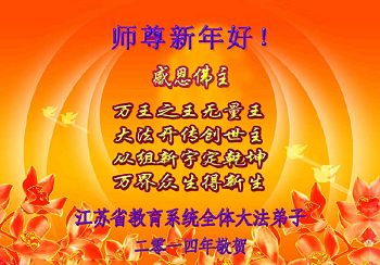 我是焦作地区大法弟子,代表焦作地区的大法弟子们和觉醒世人借此元旦佳节之际,祝贺我们慈悲伟大的师父元旦佳节快乐!