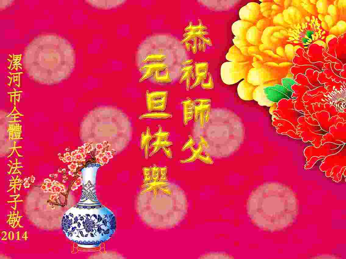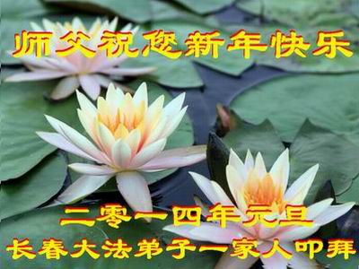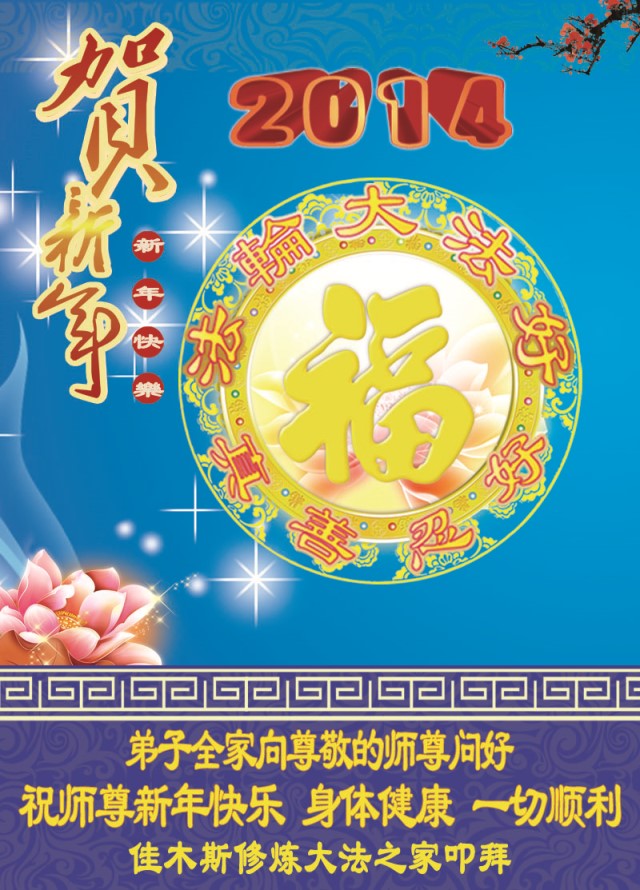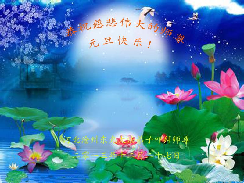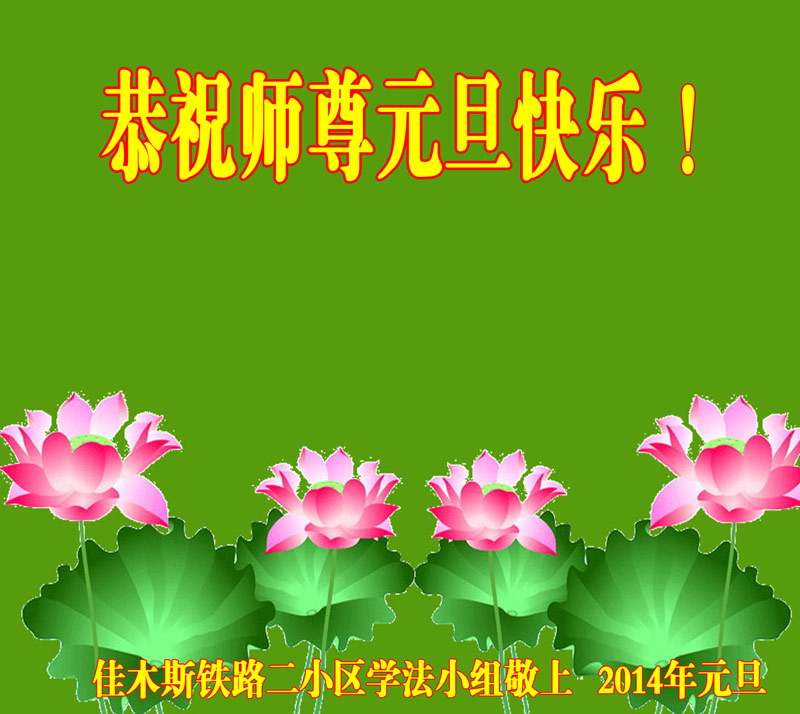 大庆东风新村一区、八区、第八采油厂全体大法弟子向伟大的师尊拜年,祝师父2014年元旦快乐!