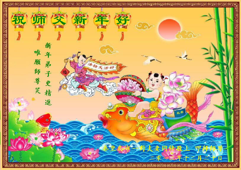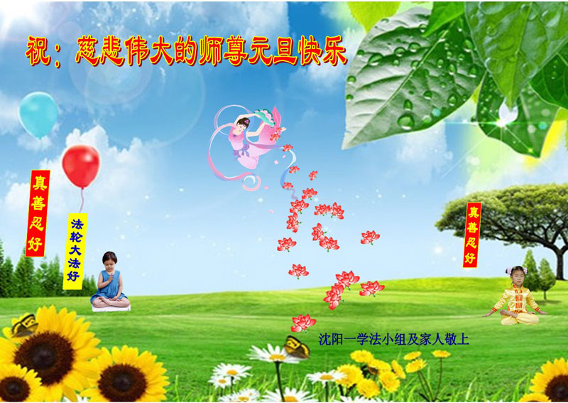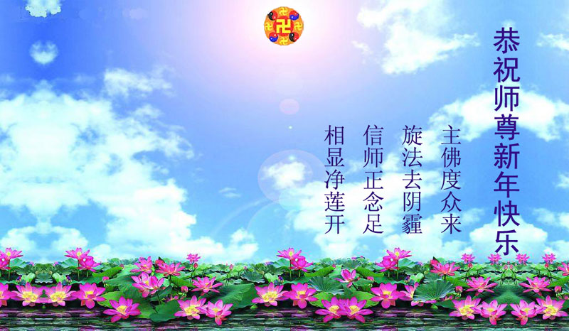 师尊好!时间飞逝,转眼進入新的一年,我们非常想念师尊!祝师尊新年快乐!能成为大法弟子,我们感到非常荣耀和幸福,我们不忘自己的使命,每天讲真相救众生,努力做好三件事。彼此沟通、互相配合、共同精進,圆满随师还。
