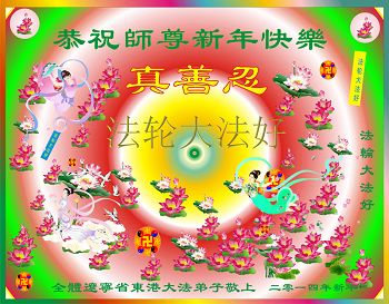 我们家族祖孙四代三十余口一直相信法轮大法,敬重李洪志大师。因为我们的亲戚中有数名大法弟子,从他(她)们身上让我们看到了法轮大法的美好、纯正与神奇,我们家族也跟着受益多多,每个家庭都平安幸福,吉祥如意,喜事接连不断,这是我们相信大法、敬重李大师得到的福报。因此,特借二零一四年元旦来临之际,我们全家向李大师表示最诚挚的感谢!恭祝李大师元旦快乐!