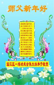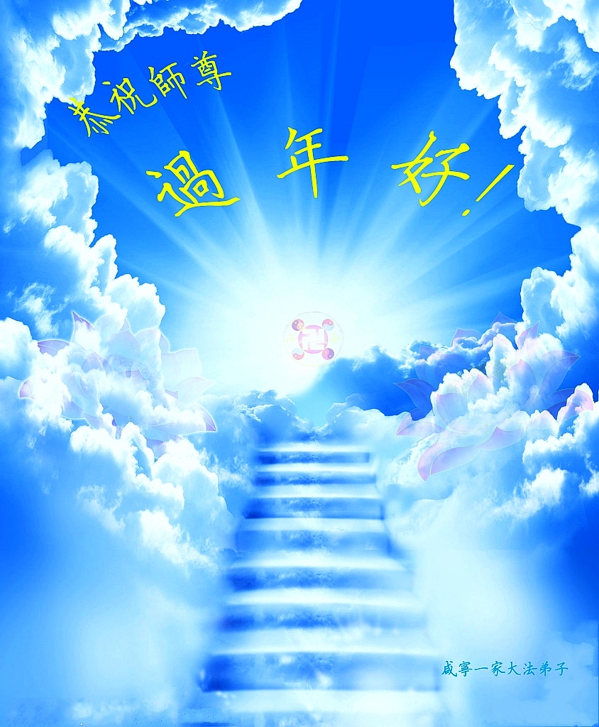 师尊您好!师尊辛苦了!新的一年又要到了,在此新年来临之际,弟子倍加思念师尊!一定谨记恩师教诲,多学法,去执著,在法中升华自己。努力做一个合格的大法弟子,新年更精進,跟上正法进程多救迷中众生,以对得起师尊为我们巨大的付出和慈悲苦度,兑现誓约圆满随师还!弟子叩拜师尊,合十!