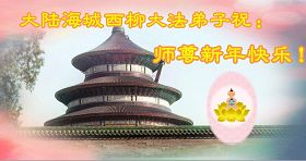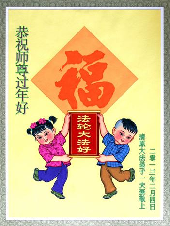您为拯救众生、为您的弟子们修炼提高护航实在太辛苦了,您为人类带来了无限的光明和希望。看到您的弟子在中共高压迫害的14年里,他们一如既往,年复一年日复一日的做着讲清真相救人的大事,而且不求回报,无私付出,只有您这高德师父才会教出如此善良无私的徒弟。为表敬意,借新年佳节之际发个贺卡,祝您新年愉快,合家欢乐。