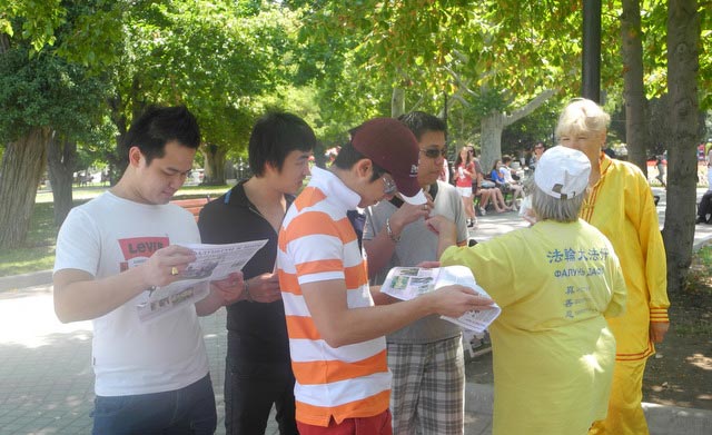 【明慧网二零一三年八月九日】二零一三年七月二十八日,法轮功学员在乌克兰克里木半岛著名的旅游城辛瓦斯多波尔市举行活动,介绍以“真、善、忍”为修炼原则的法轮功,并针对中共活体摘取法轮功学员器官的暴行,向当地居民和游客广泛征签反迫害