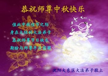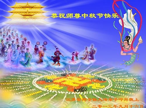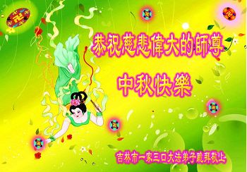 我们庆幸自己能够有如此殊荣,向远隔重洋的李大师恭祝中秋节快乐,向伟大慈悲的李大师献上我们永远的感恩!冥冥之中似乎等待了千万年,直到我们了解了大法的真相,做了“三退”,我们才如梦方醒,从中共邪党蛊惑欺骗的漩涡中跳了出来,原来自己一直以来挣扎于沼泽地中苦苦等待的就是这个!我们明白了怎样做人,怎样生活,心中充满了希望与阳光!我们由衷的感恩李大师!感恩李大师救度了我们!