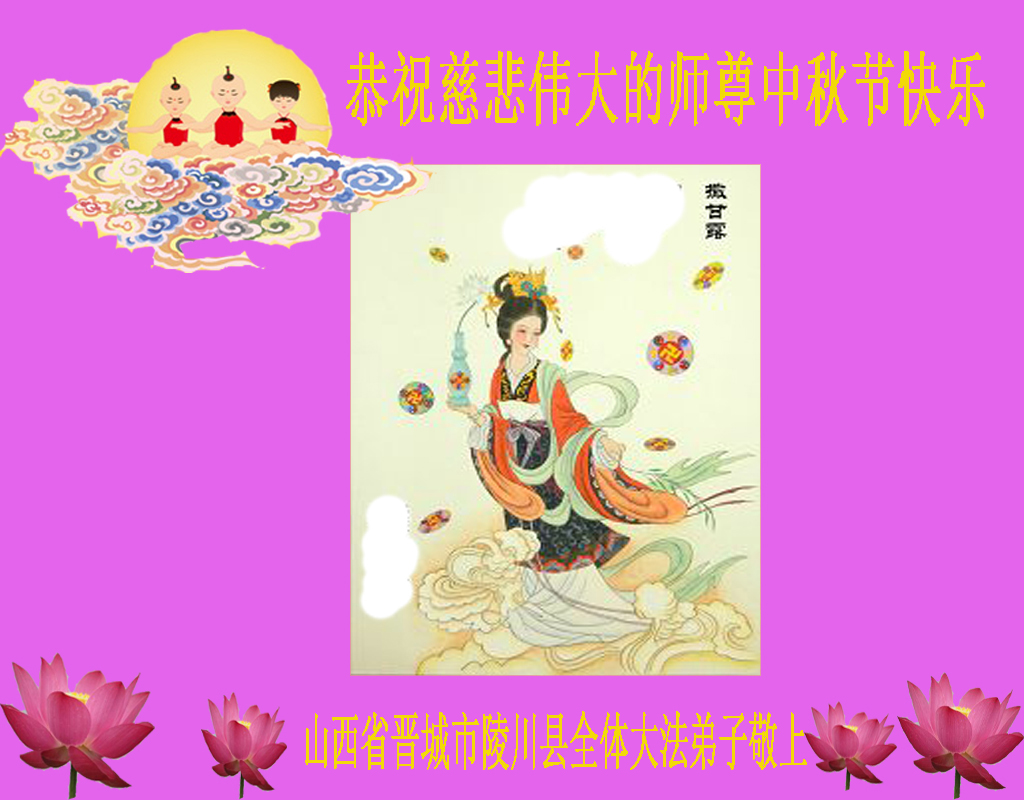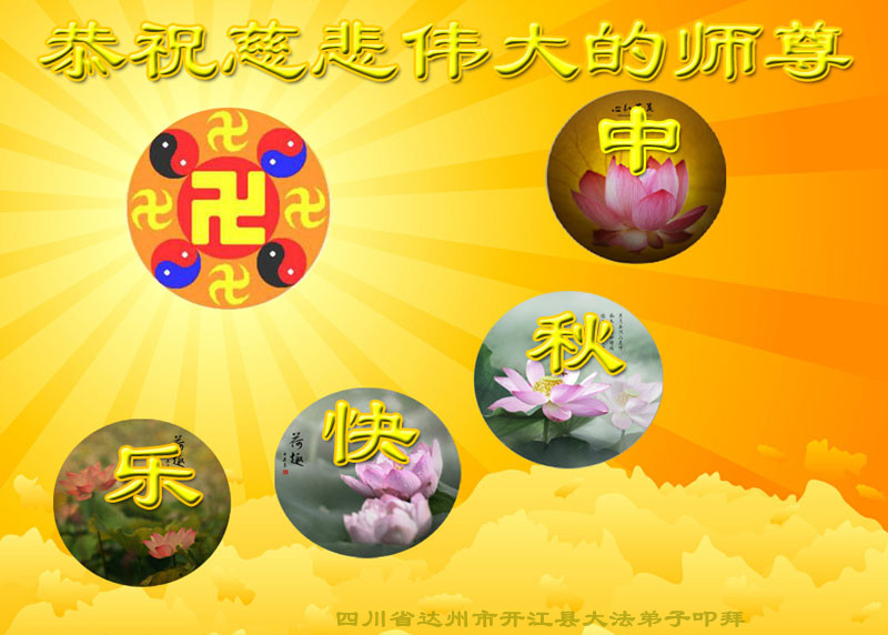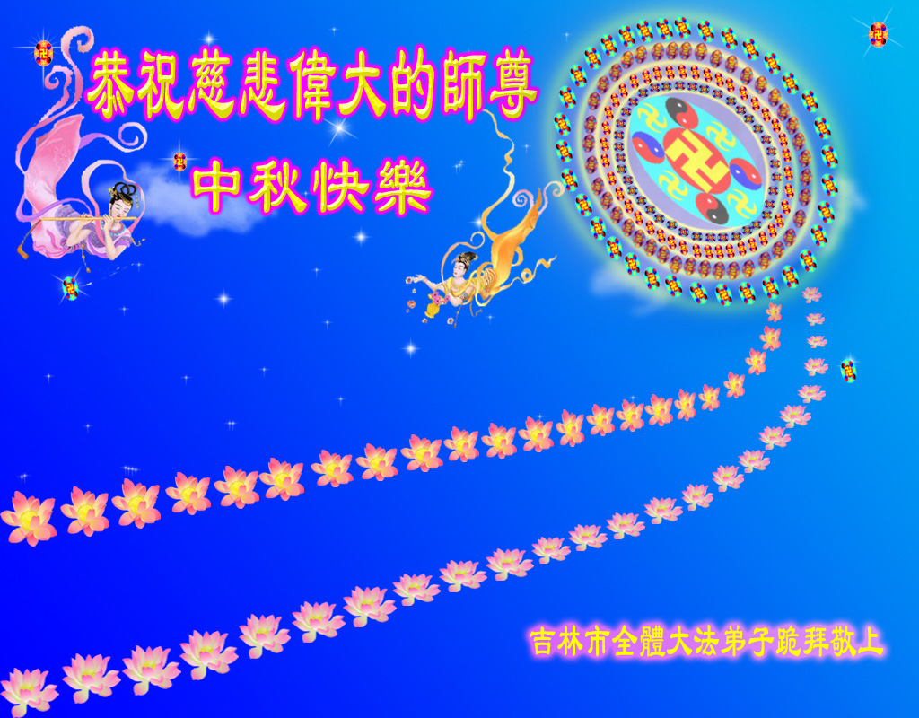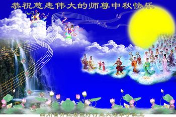 在中国传统的中秋佳节来临之际,我们八十多位明真相得福报的生命感恩大法、感恩慈悲伟大师尊的救度与呵护!共同祝愿慈悲伟大的师尊中秋节快乐!