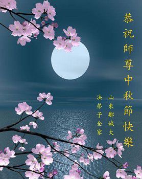 师尊您好:一年一度的中秋节又到了,在这佳节到来之际,我们全家三名大法弟子叩首跪拜师尊,