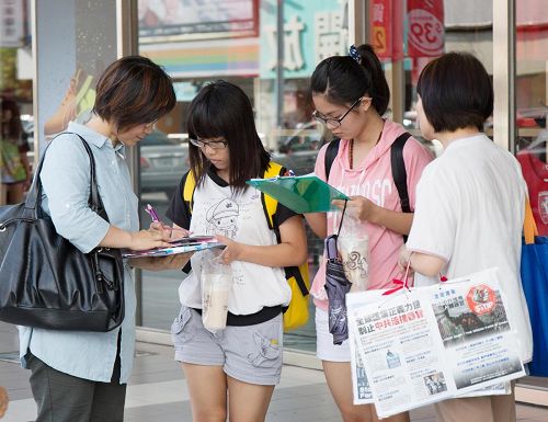 高雄第一大公园——中央公园常常举办很多活动,很多学生一明白真相后几乎都会连署。一次,三个学生主动过来询问,其中一位林小姐一听说是制止中共强摘法轮功学员器官,马上说,之前她参加台大一个研习营,就有人谈到这件事,她表示:当然要签下反强摘器官连署,这是救人。她的另两位同学也都签名了,她说还会找人过来签名。