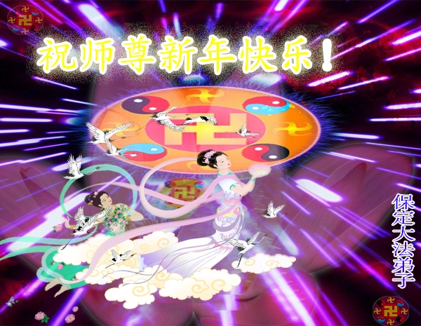 向慈悲伟大的师父拜年。用语言无法表达内心对师父的感恩,只有精進实修,做好助师正法,救度众生的三件事,抓紧时间救人,请师父放心。