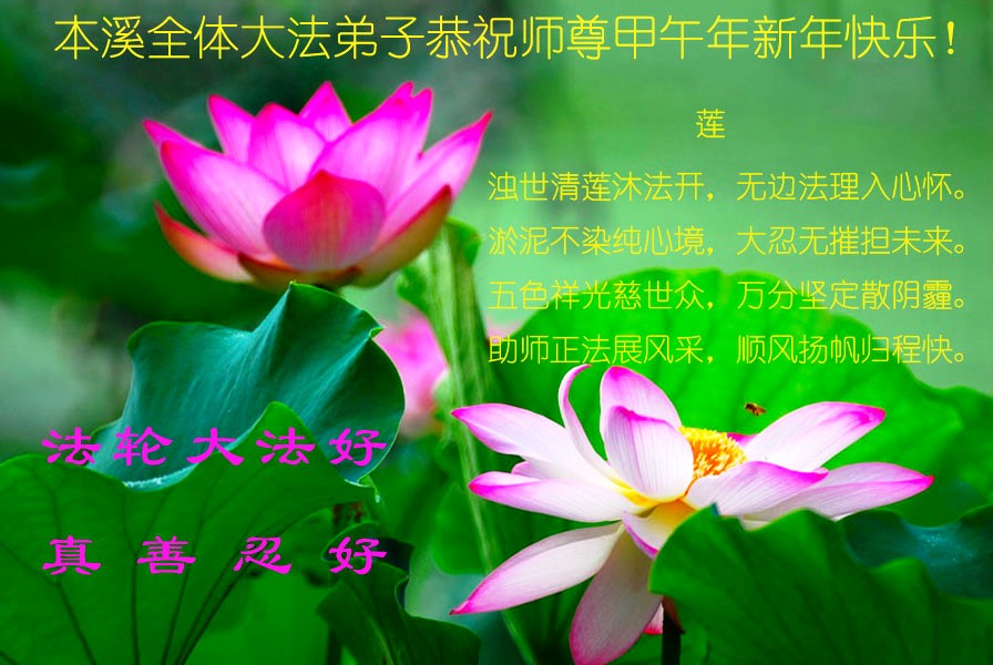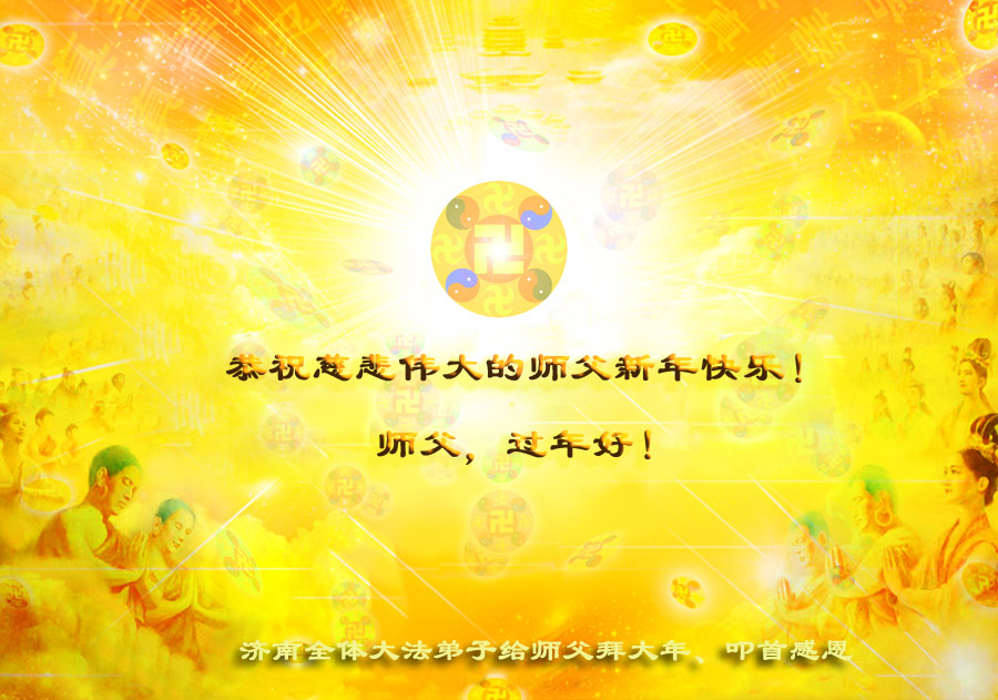 师父,过去的日子里,弟子一直在走旧势力安排的路,没能真正的在大法中修、按照师父说的去做,因而给大法抹了黑,让世人担惊受怕,决心全盘否定旧势力的安排,走出旧我,走出私,真正的做到助师正法、救度众生。在此也代表青岛地区宣传系统大法弟子恭祝师尊新年快乐!