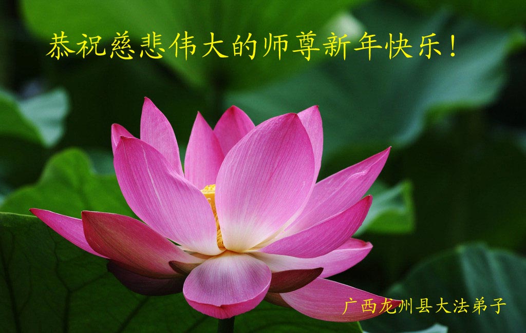 师尊新年好!弟子们想念您,谢谢您的慈悲救度!我们无法用语言来表达对您的敬意,只有在今后做的更好些,多救人,兑现我们的誓约,跟师尊回家。