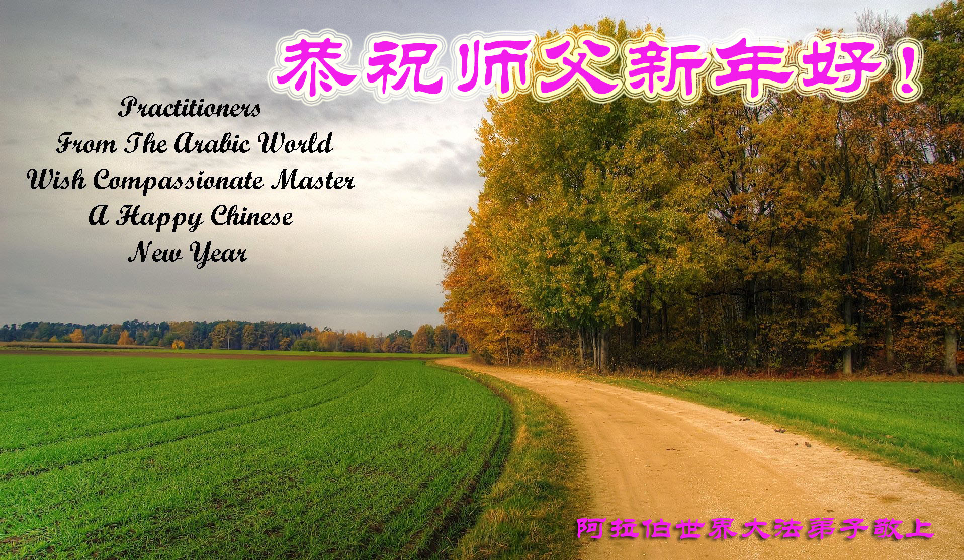 美中法轮大法学会谨代表全体美中大法弟子感恩师尊慈悲苦度无量众生; 呵护加持亿万法徒。在此新年之际, 叩拜师尊, 恭祝师尊新年好!