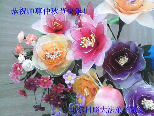 值此中秋佳节之际,山东日照大法弟子编织了美丽的工艺花献给伟大的师尊,并道一声师尊您辛苦了。日照大法弟子会逐步找出自己的差距,比学比修,稳步做好三件事,让师父少一份辛劳,多一份欣慰,日照大法弟子都盼望着和师父早一天团聚!
