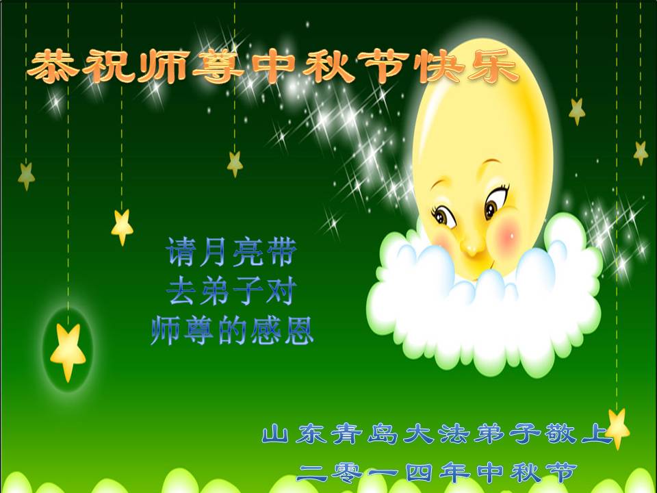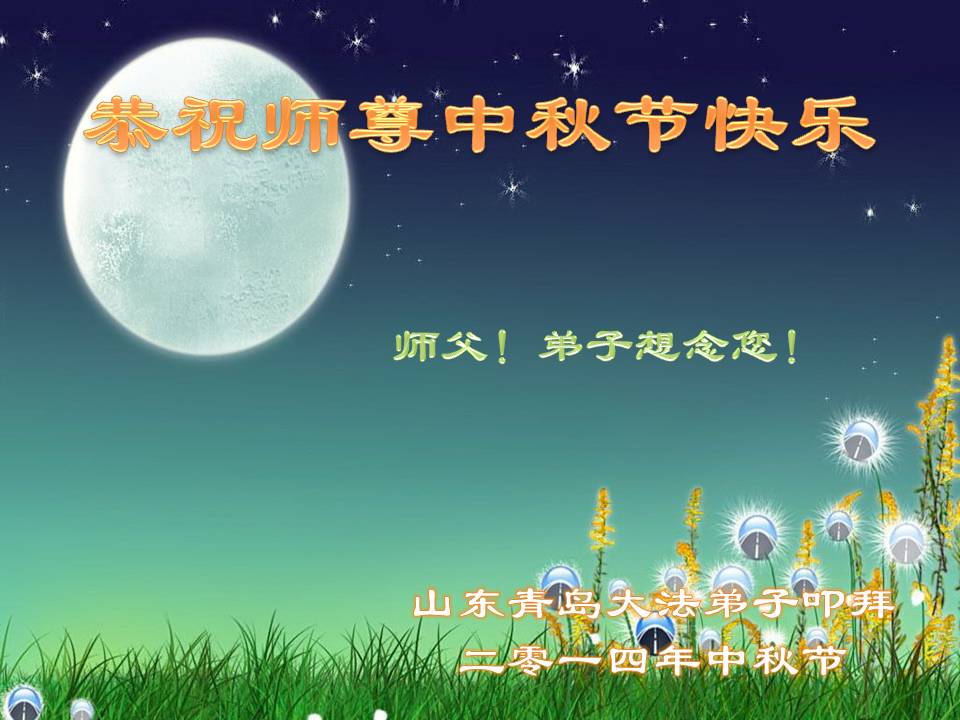 青岛大法弟子及家人中秋节向师父问候,师父辛苦了。请师父放心,我们一定做好三件事。师父您好,多谢师父。师父您好,多谢师父。