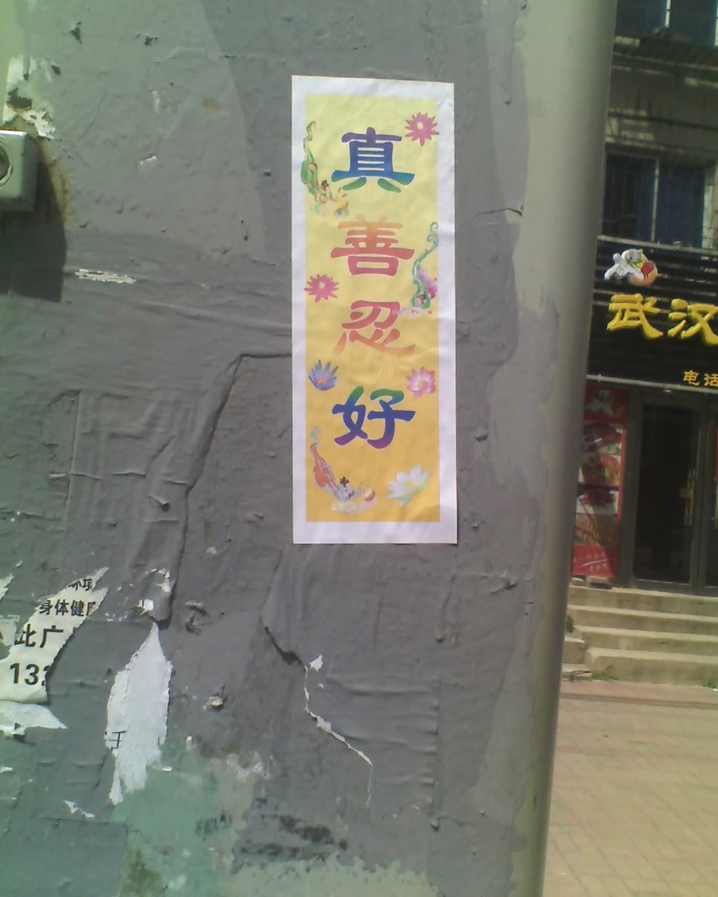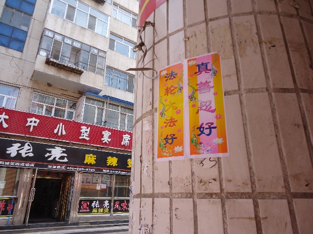 山东淄博街头可见“法轮大法好”黏贴