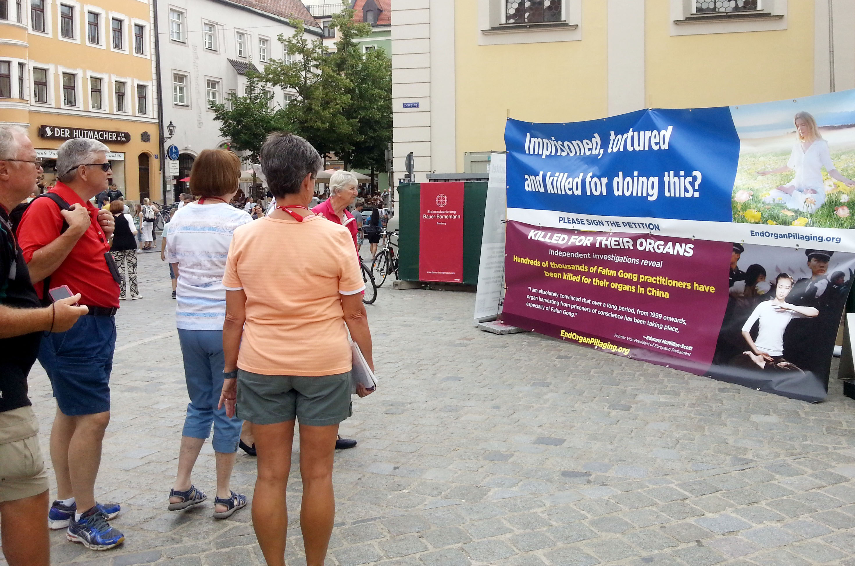 法轮功学员在德国南部城市雷根斯堡举办反活摘征签