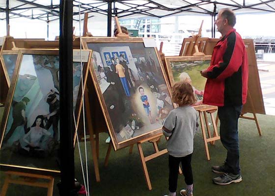 美展中,很多来自新西兰其它城镇的观众们知道法轮大法的美好后,表示要回去好好了解一下,上网学炼。