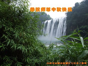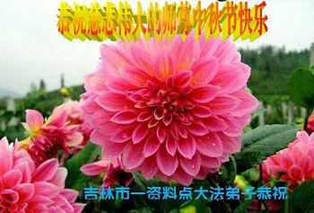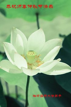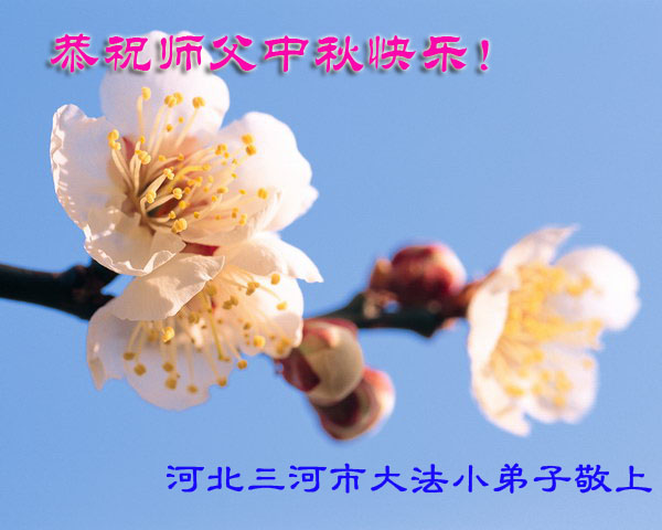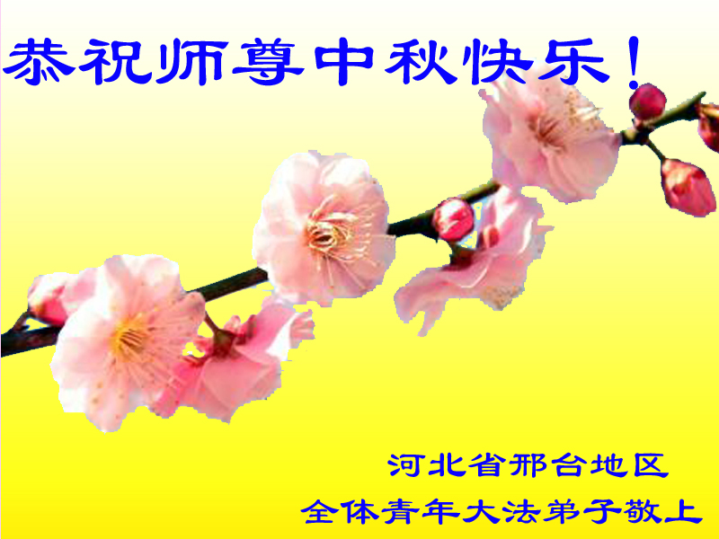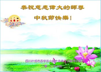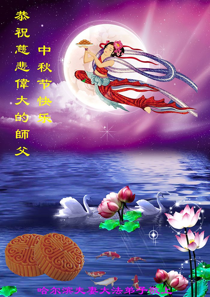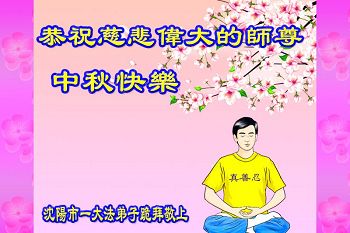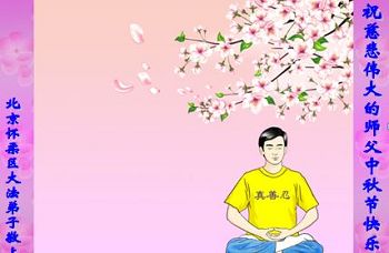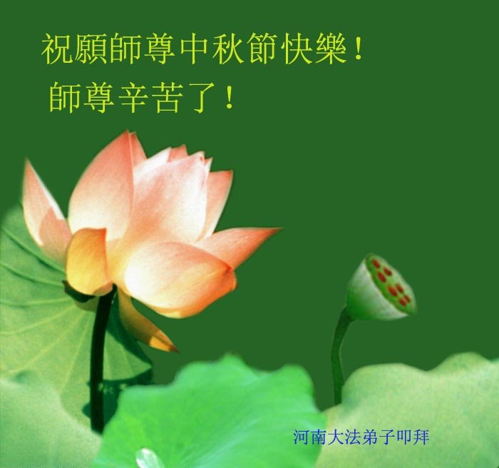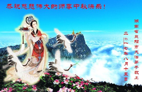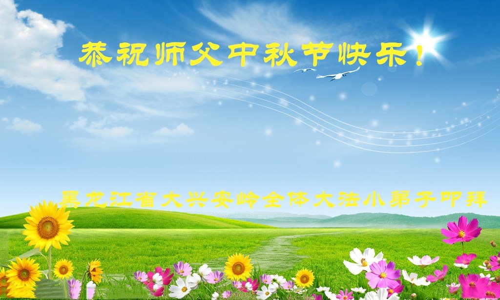 九月份,我从平房上掉下来之时,脑子里闪过九个大字“法轮大法好,真善忍好”瞬间安然无恙,我知道是您在我危难之时救了我,给了我第二次生命,使我又有了平静的生活,我无法报答您的救命之恩,只好借中秋节来临之际,祝慈悲伟大的李洪志大师中秋节快乐,谢谢您给了我这一切。“法轮大法好!真、善、忍好!”
