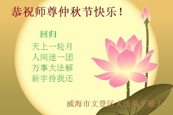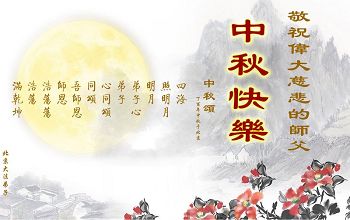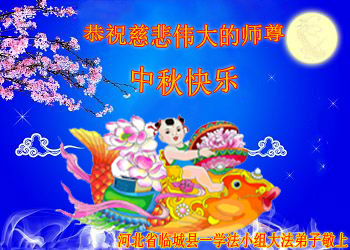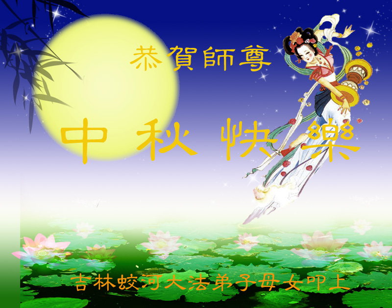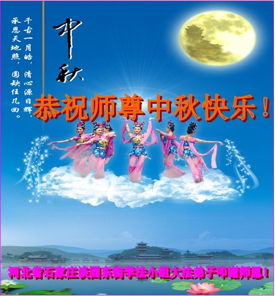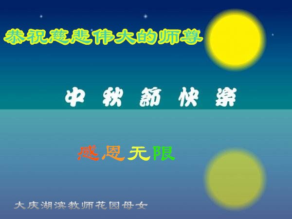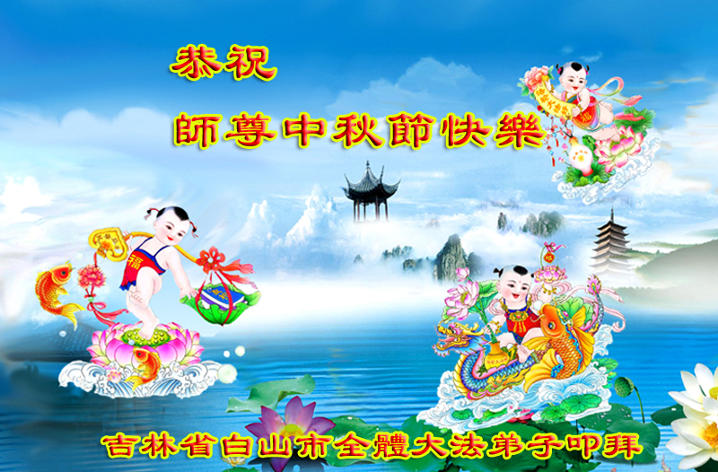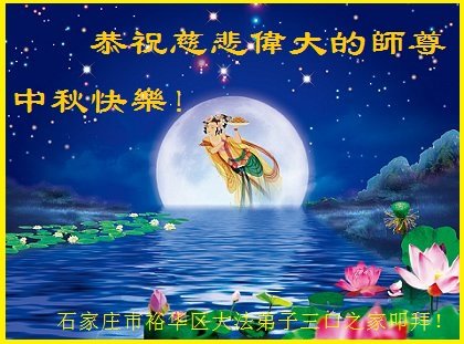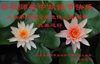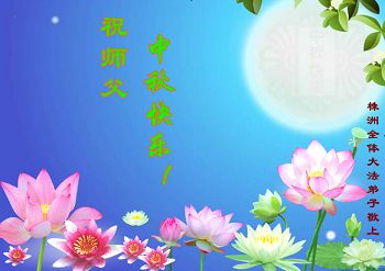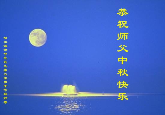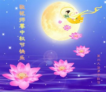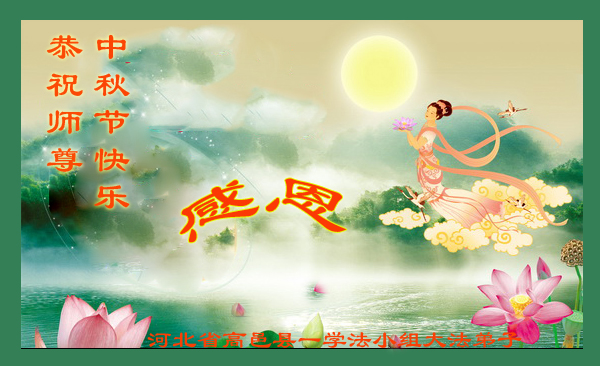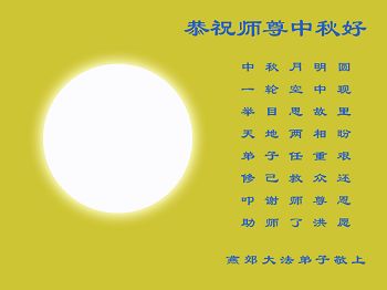 山东省省政府机关大法弟子在中秋节即将来临之际,向慈悲伟大的师尊致以最崇高的敬意和问候。祝师父中秋节快乐!弟子非常想念你,我们将一如既往的在助师世间行的道路上做好三件事,以完成好自己的历史使命,救度众生,再一次的感谢和叩拜师父的慈悲苦度。祝师父中秋节快乐!