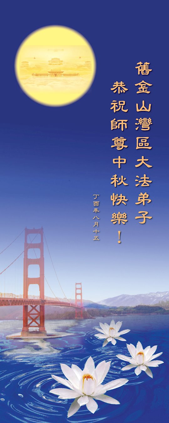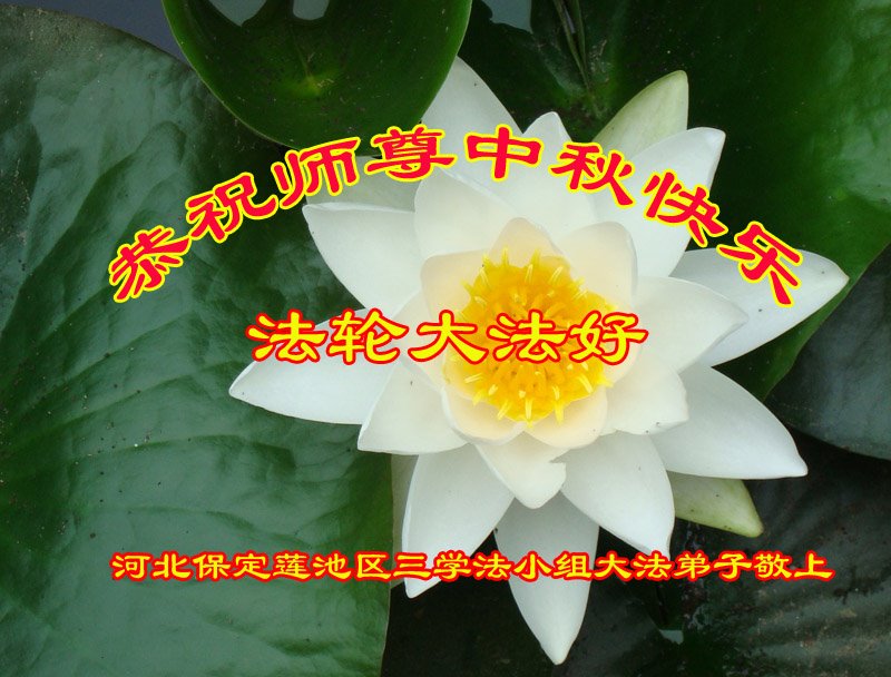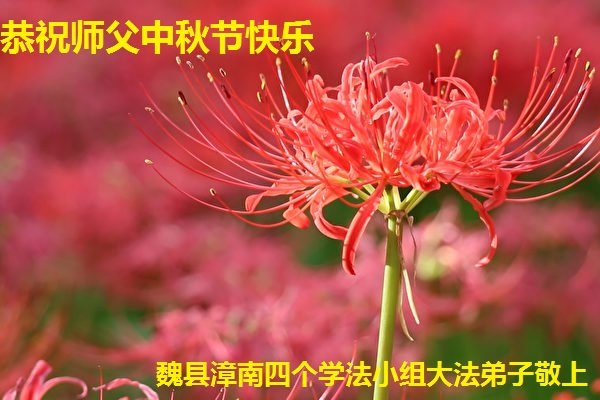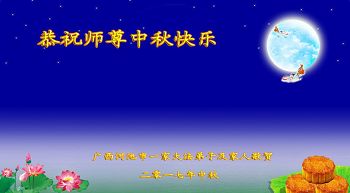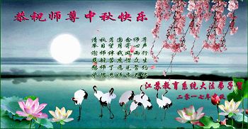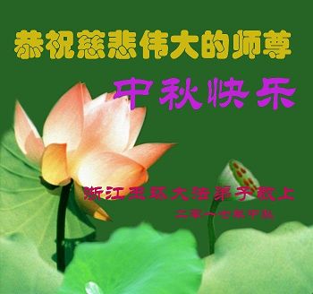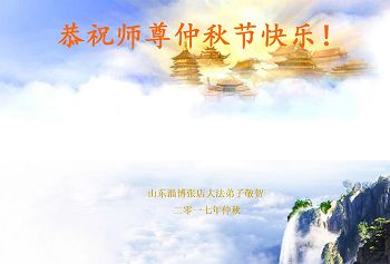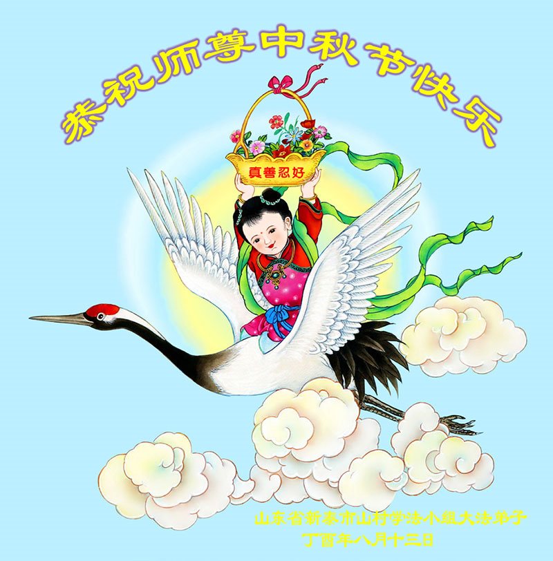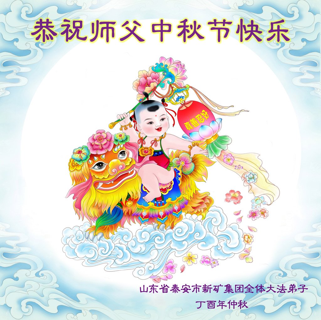 山东省省政府机关大法弟子在中秋节即将来临之际,向慈悲伟大的师尊致以最崇高的敬意和问候。祝师父中秋节快乐!弟子非常想念你,我们将一如既往的在助师世间行的道路上做好三件事,以完成好自己的历史使命,救度众生,再一次的感谢和叩拜师父的慈悲苦度。祝师父中秋节快乐!