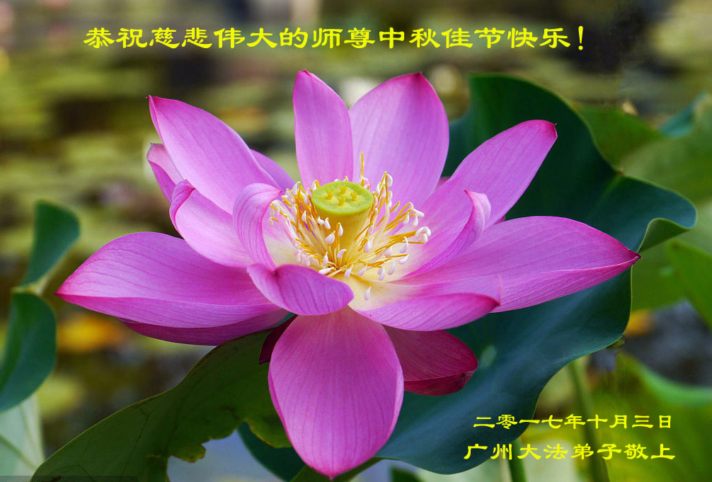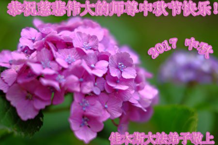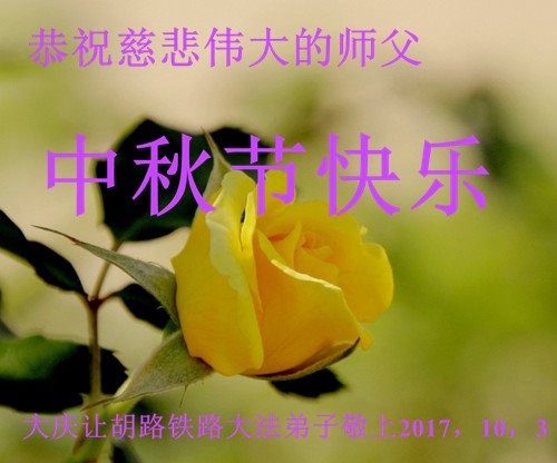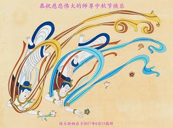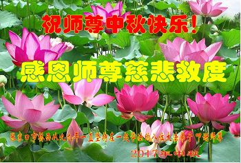 在二零一七年传统中秋喜庆佳节来临之际,弟子深怀无限感恩的心情叩拜师父,感恩师父的慈悲苦度,感恩师父对众苍生的慈悲救度,恭祝师父中秋好。在师父正法最后时间里,弟子一定用心学好法,向内修,修好自己,用心做好三件事,用心救人,兑现誓约,绝不辜负师父的慈悲苦度,跟师父回家。