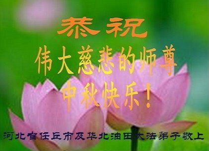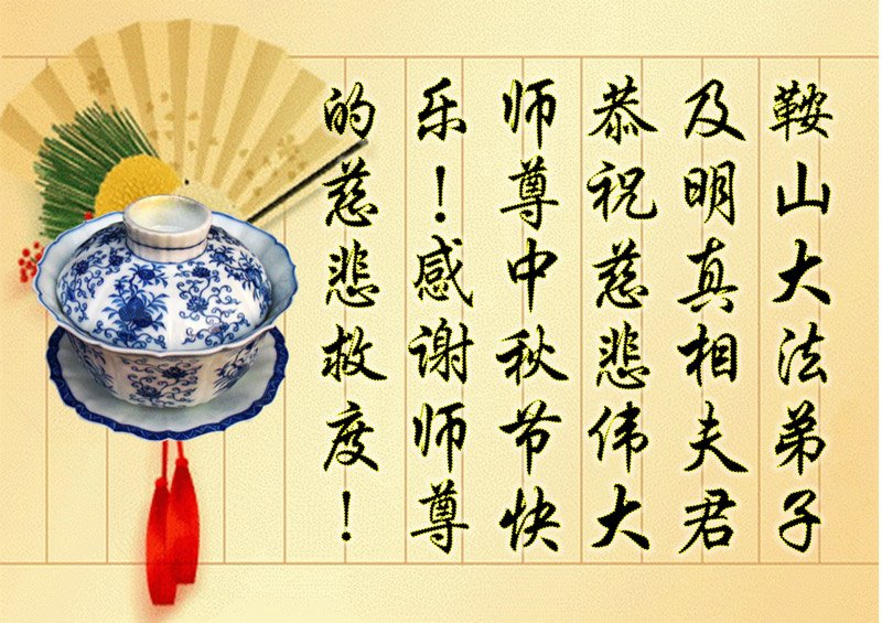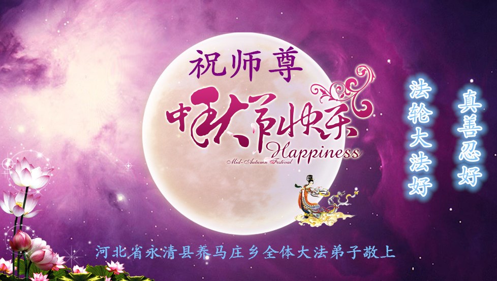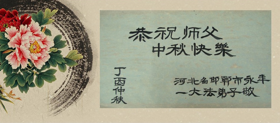 陕西省礼泉县二位明白真相的世人,委托法轮功学员向慈悲伟大的师尊表示节日的问候,敬祝师尊中秋节快乐!