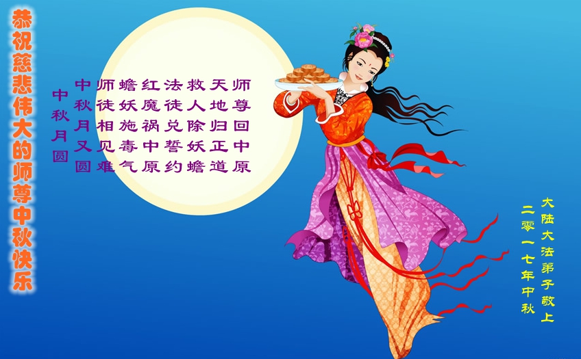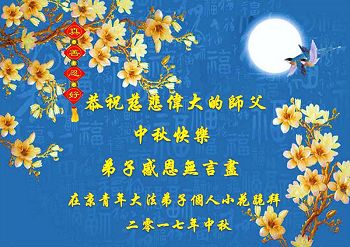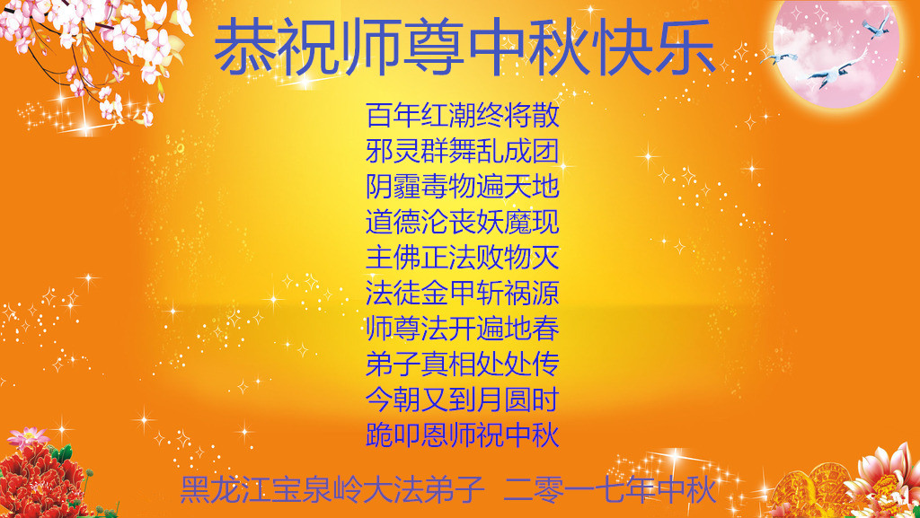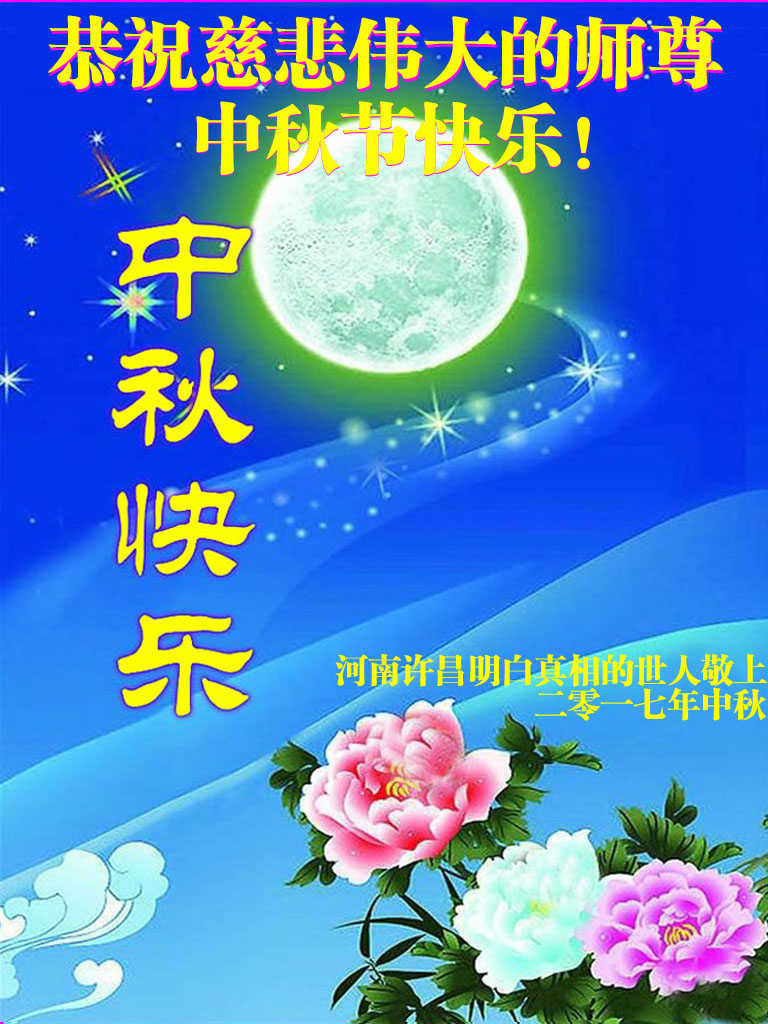 <英文版: http://en.minghui.org/html/articles/2017/10/5/165931.html>大陆百姓恭祝大法师父中秋快乐(38条)