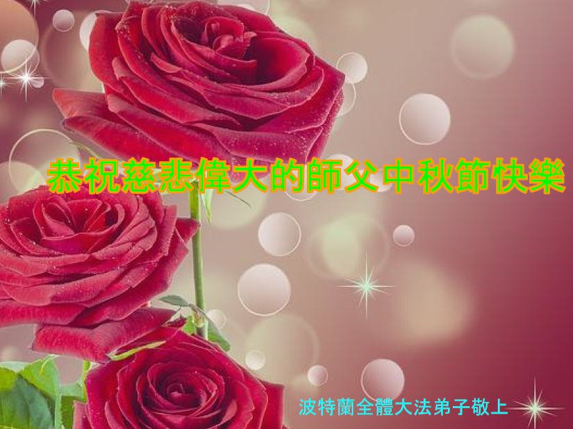 大陆全体法官大法弟子恭祝您中秋快乐!弟子们一定抓紧多学法、发正念,修炼好自己;抓紧讲真相,证实大法,救度更多的众生。决不辜负师尊的慈悲苦度。感谢慈悲伟大的师尊!谢谢!