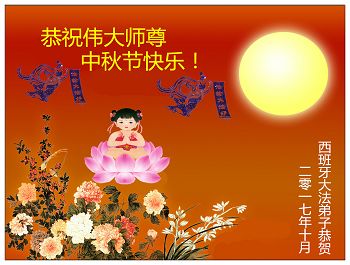 我借这个中秋佳节向法轮功师父问好。祝法轮功师父中秋快乐!我会记住“法轮大法好”、“真善忍好”九字吉言。感谢这位法轮功学员对我讲的所有真相,使我有了选择生命的机会。盼法轮功师父早日回国。