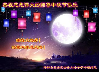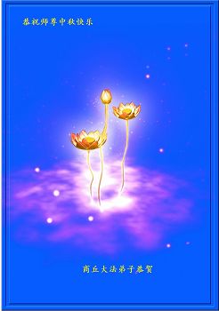 修炼法轮大法,是我生命中最大的荣幸与幸福。衷心感谢伟大的师尊慈悲苦度与呵护!在中秋节到来之际,弟子恭祝师尊中秋节快乐!合十