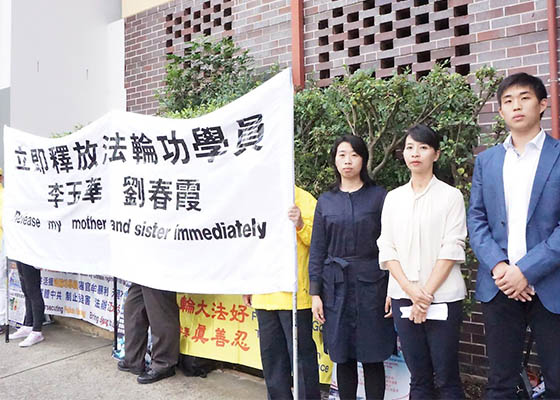 亲人被绑架 悉尼法轮功学员中领馆前抗议(图)