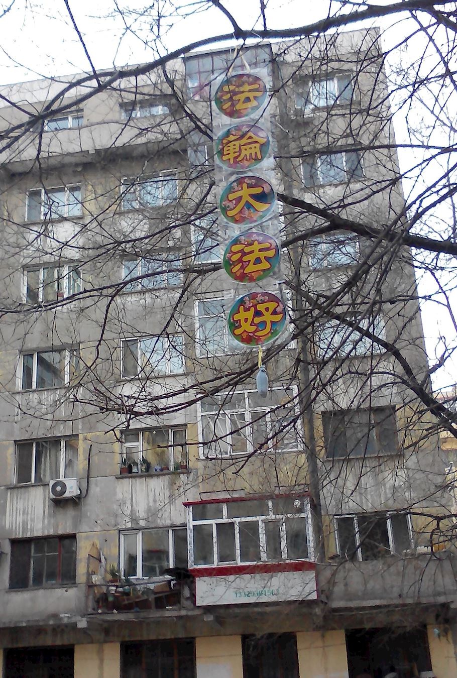 哈尔滨市近期拍照的讲真相展板树挂图片
