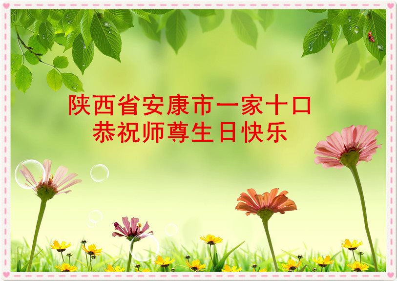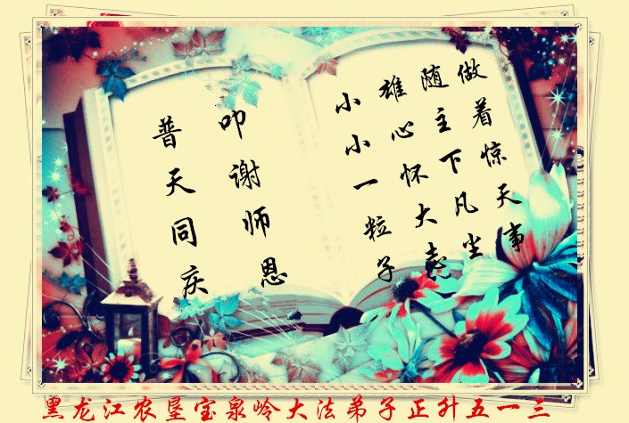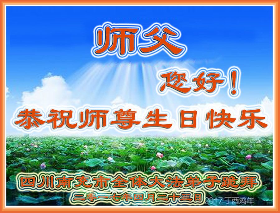 在五一三这个普天同庆队伟大时刻,我和我的家人在此恭祝:恭祝慈悲伟大的师尊生日快乐!为了芸芸众生得救,师父,您辛苦了!在此也祝贺:法轮大法洪传二十五周年!