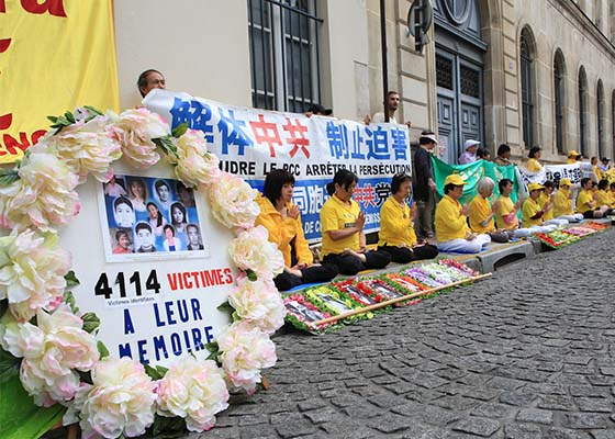 巴黎中使馆前 法轮功学员呼吁制止迫害(图)