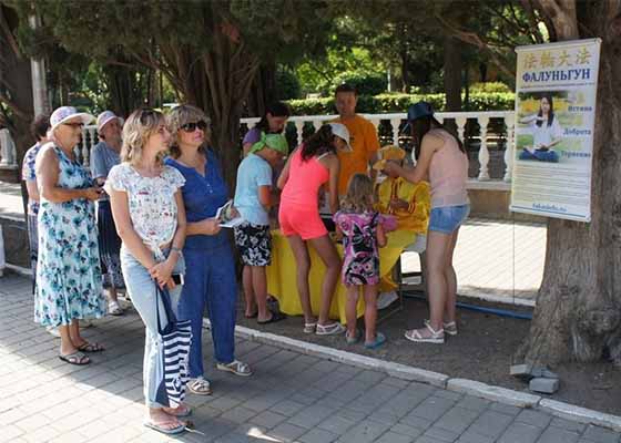 在反迫害十八周年之际,澳大利亚南澳洲首府阿德莱德法轮功学员在市中心介绍功法,揭露中共迫害。
