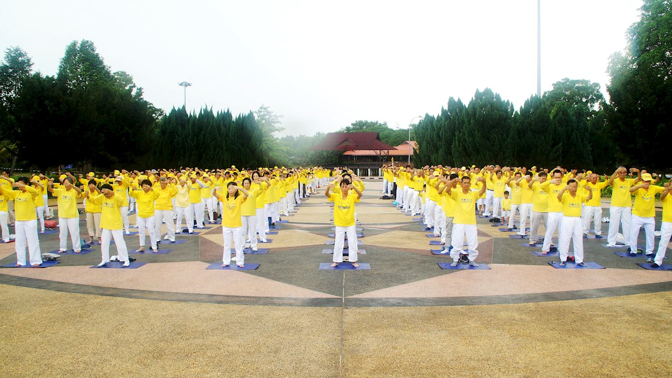 十二月八日下午,法会召开前夕,法轮功学员在当地著名的新山市政局城市森林休闲公园(Hutan Bandar MPJBT)举行了集体炼功。