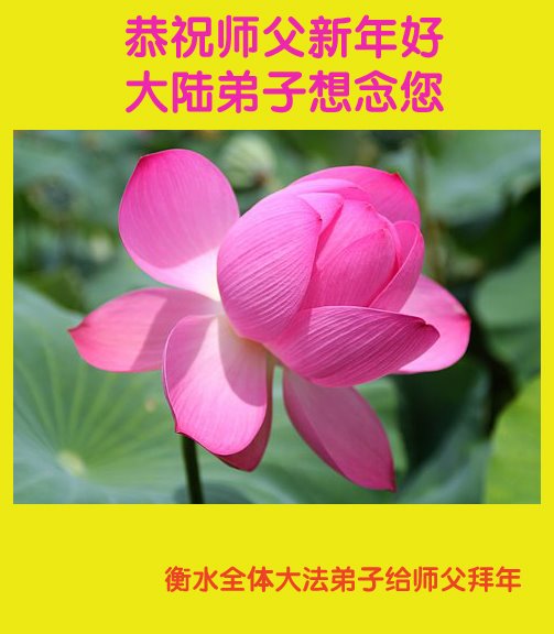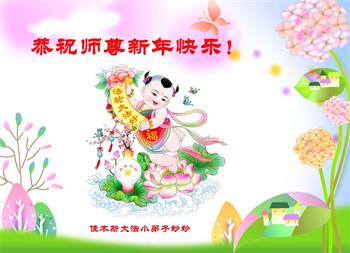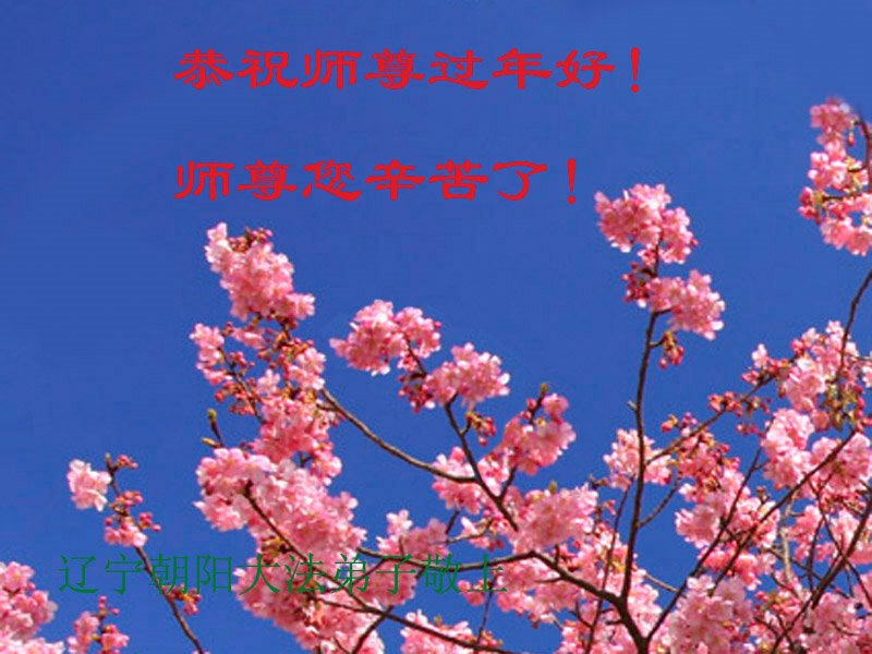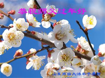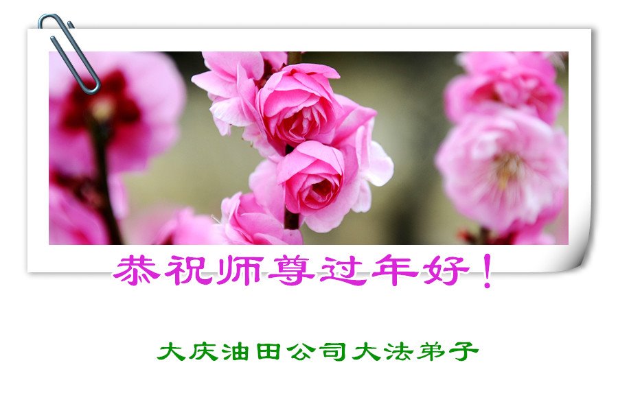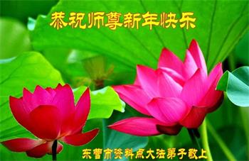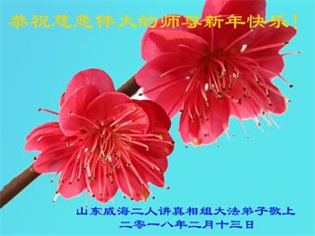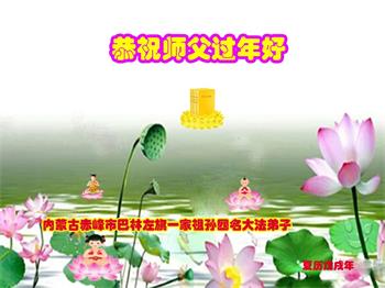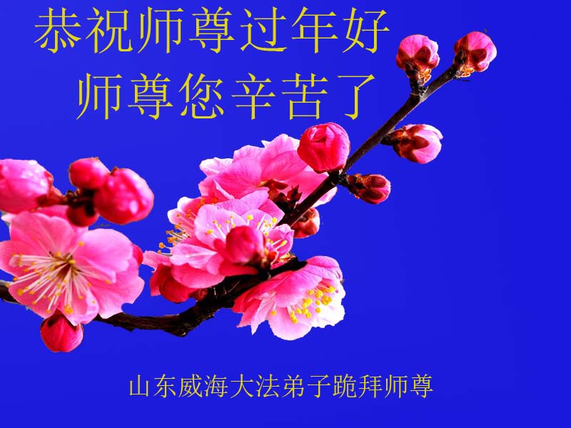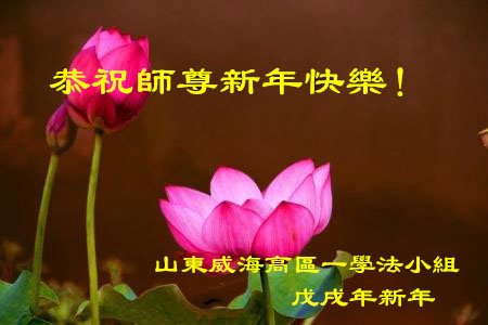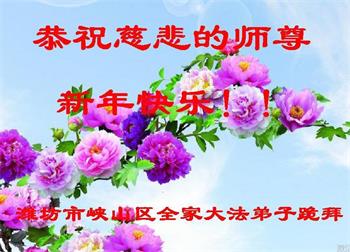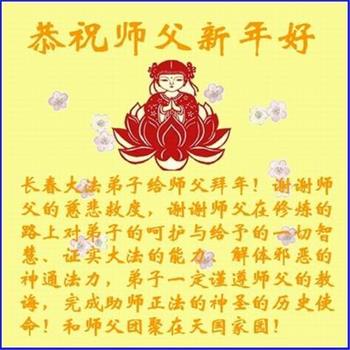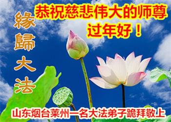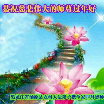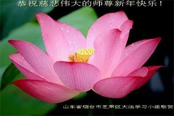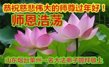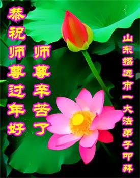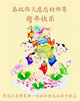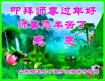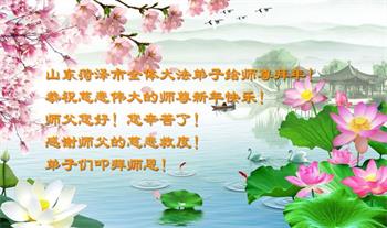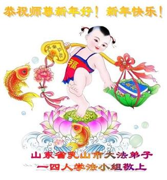 慈悲伟大的师父好!在这天地更新、万物复苏的时候,我们青岛东部的一资料点的全体老少大法弟子及家人给您拜年!恭祝师父新年快乐!借此,我们把满怀对慈悲伟大的师父的思念和感恩之心凝成一句话:学好法,修好心,不懈怠,多救人,路走正,报师恩,证实法!