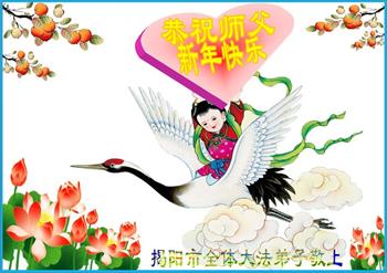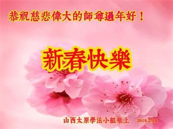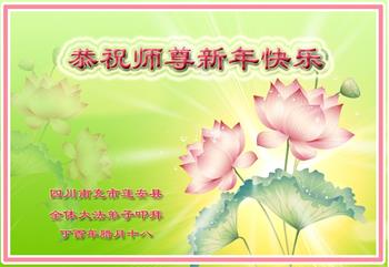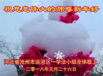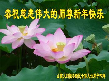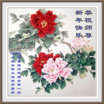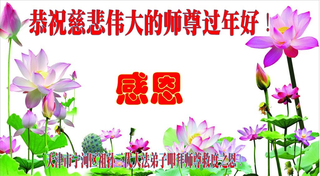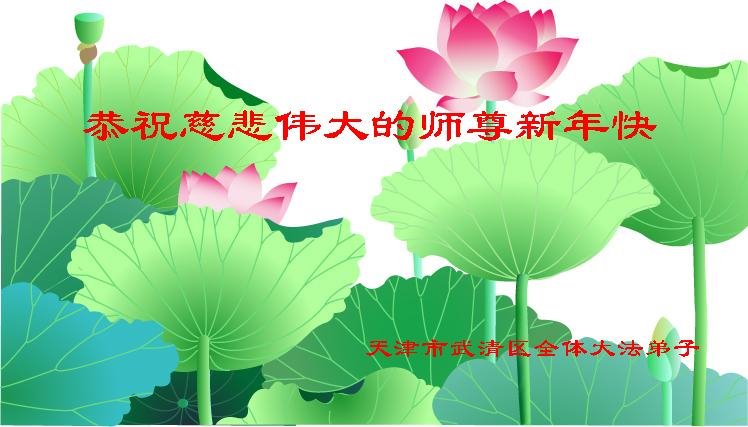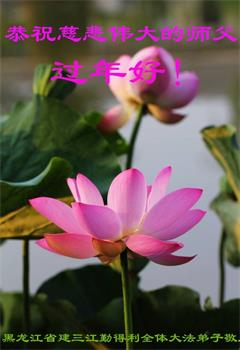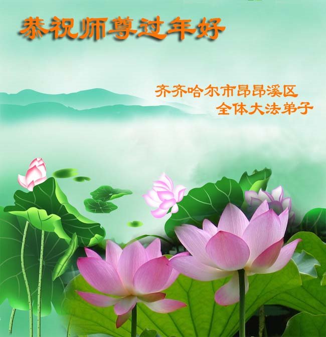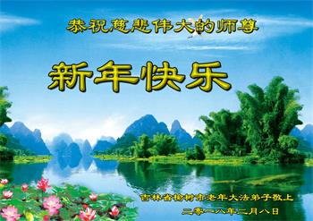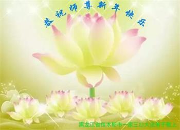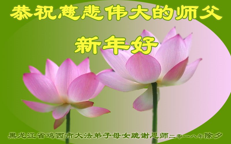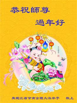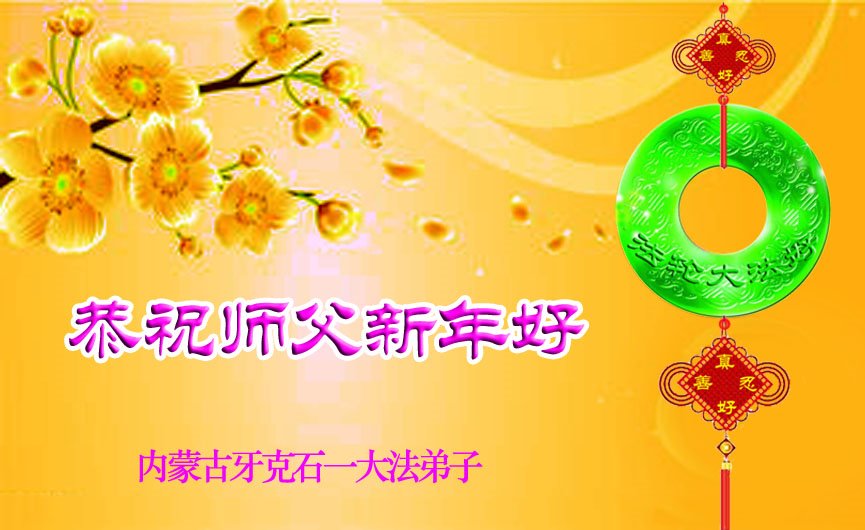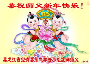 慈悲伟大的师父好!在这天地更新、万物复苏的时候,我们青岛东部的一资料点的全体老少大法弟子及家人给您拜年!恭祝师父新年快乐!借此,我们把满怀对慈悲伟大的师父的思念和感恩之心凝成一句话:学好法,修好心,不懈怠,多救人,路走正,报师恩,证实法!