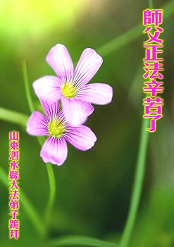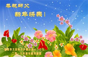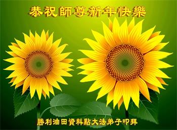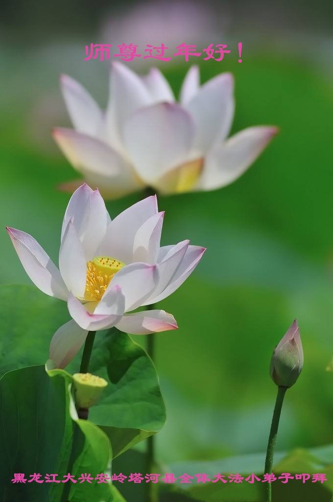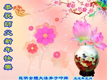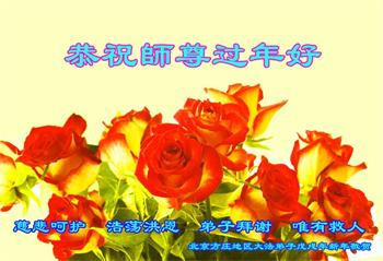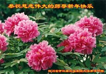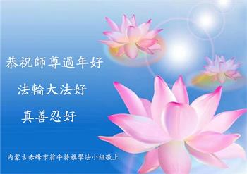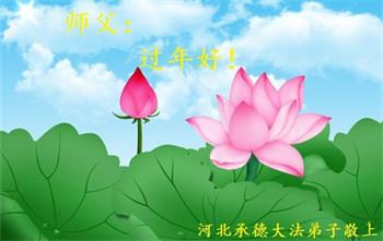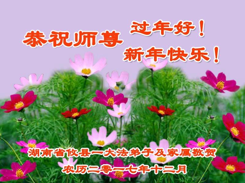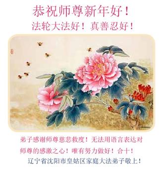 辽宁省抚顺市大法弟子说:“我们是老年大法弟子,我们在家里开了一朵小花,在师父慈悲的呵护,一路走过十多年了,这朵小花在风雨中茁壮成长着,在这严寒即将过去,春天即将来临之际,我们给师父拜年了!师父过年好!师父您辛苦了!”