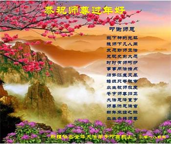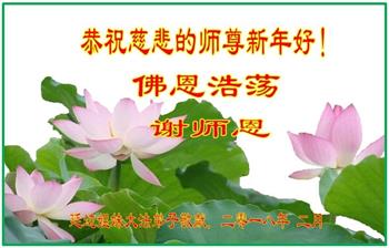 在新的一年里,弟子一定在法中归正自己,修好自己,同时救人和洪法,完成弟子助师正法的使命。同时,弟子也受一位来自中国大陆的新学员的委托,向师父恭贺新年快乐!