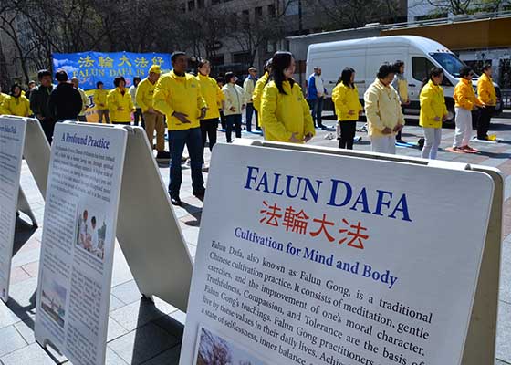 4月22日,西雅图部分法轮功学员在西雅图市中心的西湖公园集体炼功,纪念1999年4月25日中国大陆上万名法轮功学员和平上访。