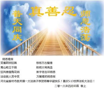 <英文版: http://en.minghui.org/html/articles/2018/5/14/170342.html>普天同庆大法日 五十余国大法弟子恭祝师尊华诞