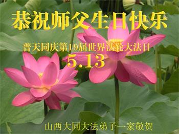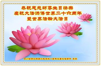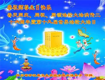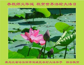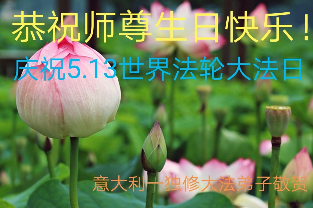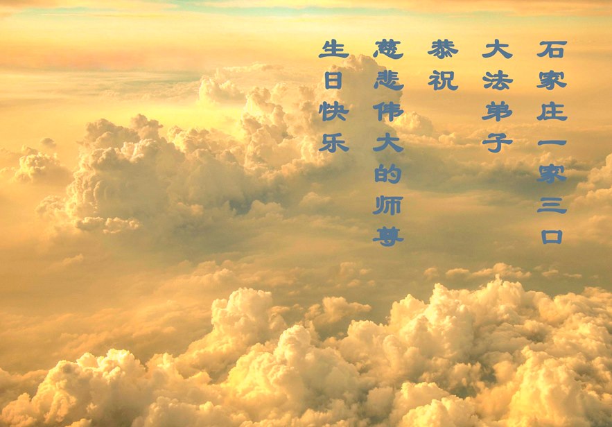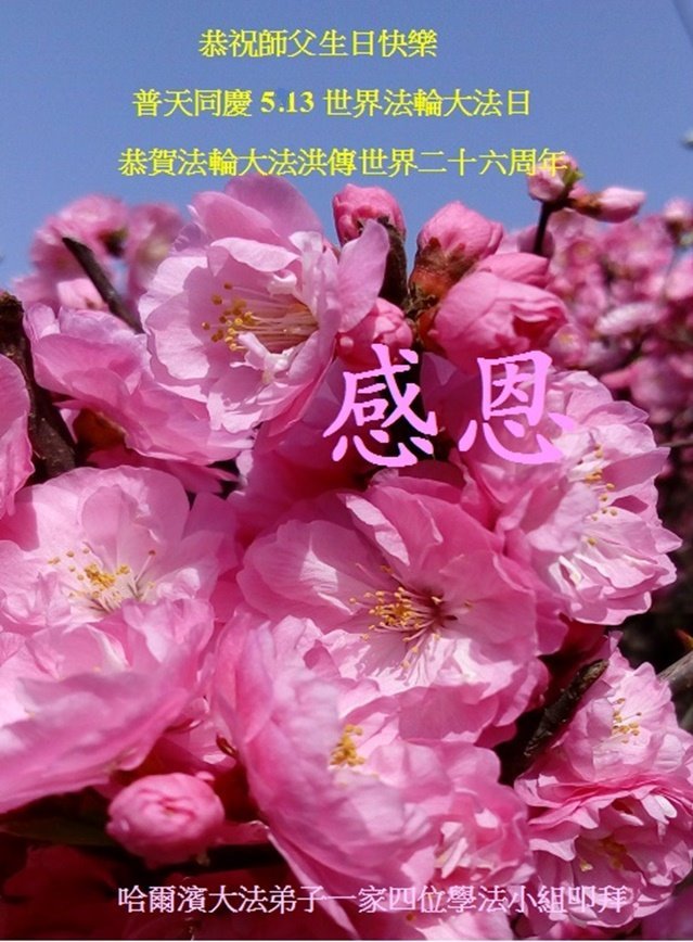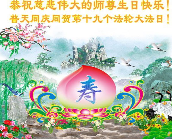 我们深谢恩师慈悲苦度!衷心恭祝师尊华诞快乐!在正法最后不多的时间里,我们一定会认真学好法,修好自己,从根本上改变常人的观念,正念正行,抓紧时间救度更多众生,完成正法时期大法弟子的历史使命,圆满跟随师尊回归家园。
