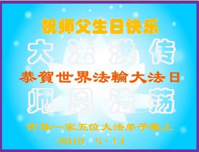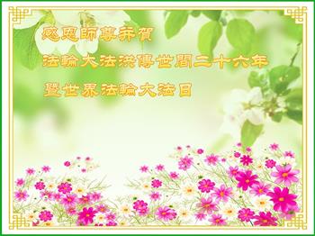在这个特殊的日子里,天上人间,普天同庆,海外的法轮大法弟子给师父发来贺词,恭祝师父六十七岁华诞,恭贺师父传法二十六周年,同贺世界法轮大法日!