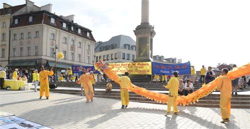 ![]() 图2~4:波兰学员在华沙古城广场集体展示法轮功五套功法 |