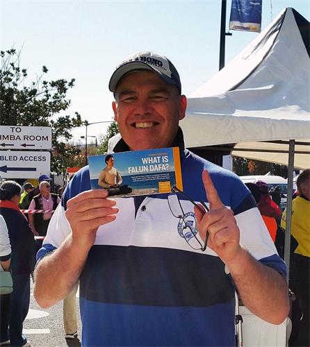 当天主席台上的另一位著名娱乐节目主持人格雷格·潘曲(Greg Punch)表示:“今天我很高兴又看到法轮大法团体来这里游行展现美好,他们为今天的游行增添了很多生机,特别是看到他们在这里弘扬真、善、忍的美好价值观。我非常赞赏法轮功告诉人们真相,在二零一八年的今天,中共活摘法轮功学员器官的罪行还在中国发生。我认为世界人民需要一起去根除这些罪恶行径。