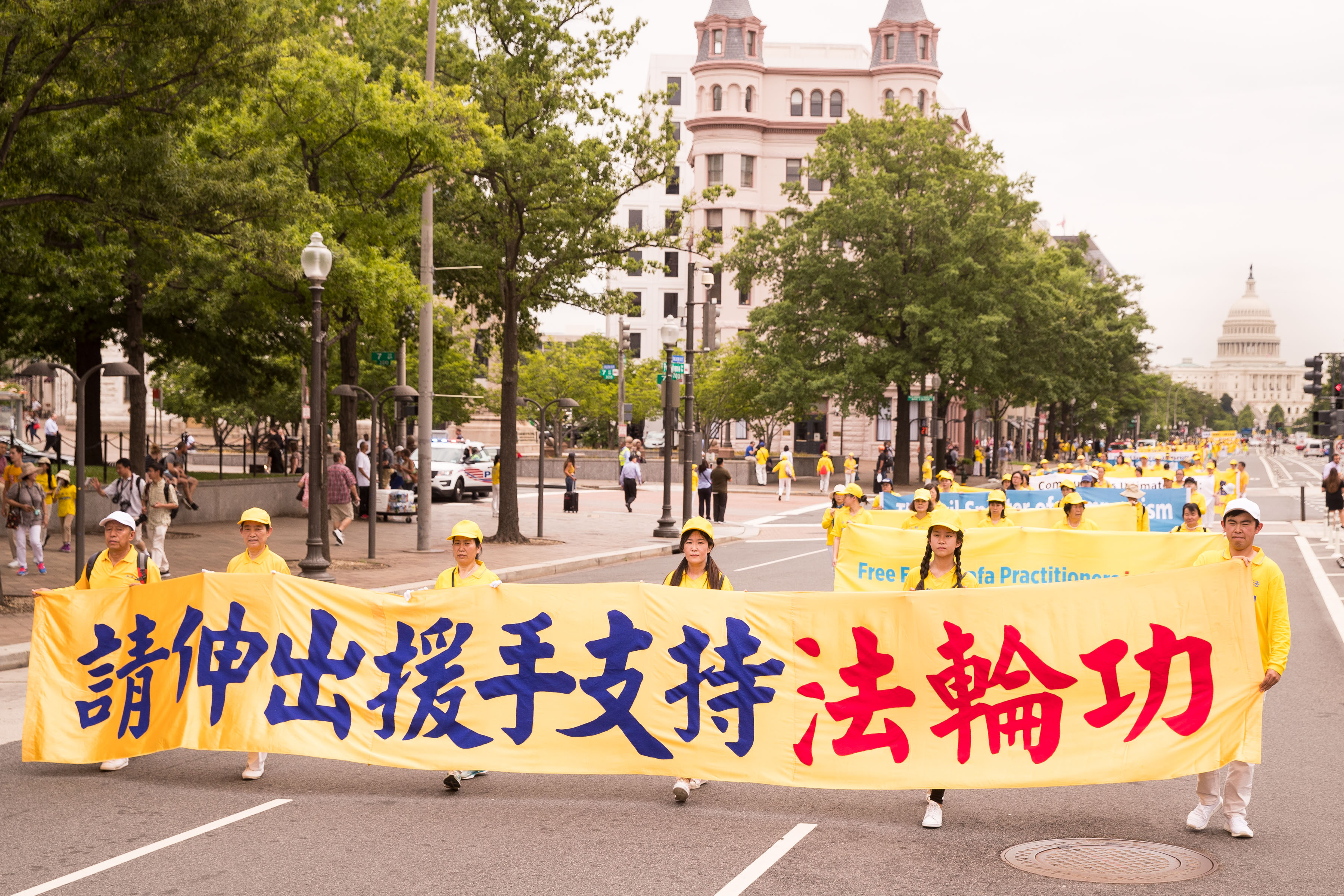 大游行于当天中午开始,天国乐团首先从国会西边草坪出发,后面是部份在中国被迫害致死法轮功学员的遗像,最后,也是最主要的部份是横幅队伍。游行队伍途经宾夕法尼亚大道、宪法大道、美国白宫,一直到华盛顿纪念碑前,全程共2.4英里。