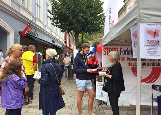 挪威法轮功学员在阿伦达尔政治周传播真相(图)