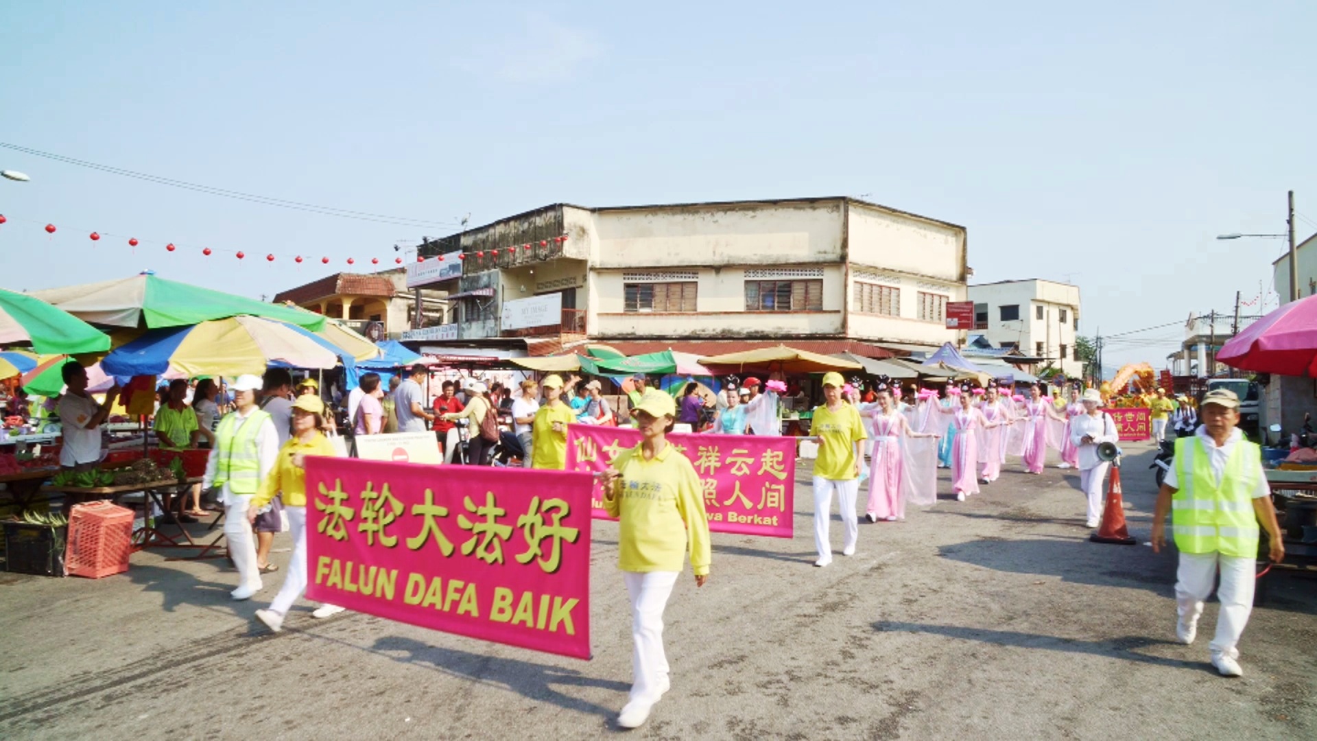 二零一九年二月十日,大年初六下午四点半,法轮功学员在霹雳州华人聚集的拱桥新村(Kanthan Baru)举行新年游行,把佳节欢乐气氛带给了当地民众。