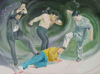 二零零六年三月四日晚十点左右,大队长普顺元和罗仲武等警察把苏昆喊出,让两名劳教人员拉上柴火前往距三大队几百米处的“陈家大坟”,让苏昆在坟墓前保持站立姿势,并命令两名劳教人员监督不准他打瞌睡,要苏昆直到把死人喊醒才可休息。就这样苏昆在寒风中被罚站到天亮。第二天早上,又将苏昆拖到秧田里,泡在水中继续折磨。晚上又继续把苏昆拖到坟前体罚站立。劳教人员还装鬼吓唬苏昆,动手猛击苏昆的后脑和前胸十多分钟。这样又折磨了一晚上后,第三天又继续将苏昆拖到秧田里泡水,就这样,苏昆被整整折磨五个昼夜。