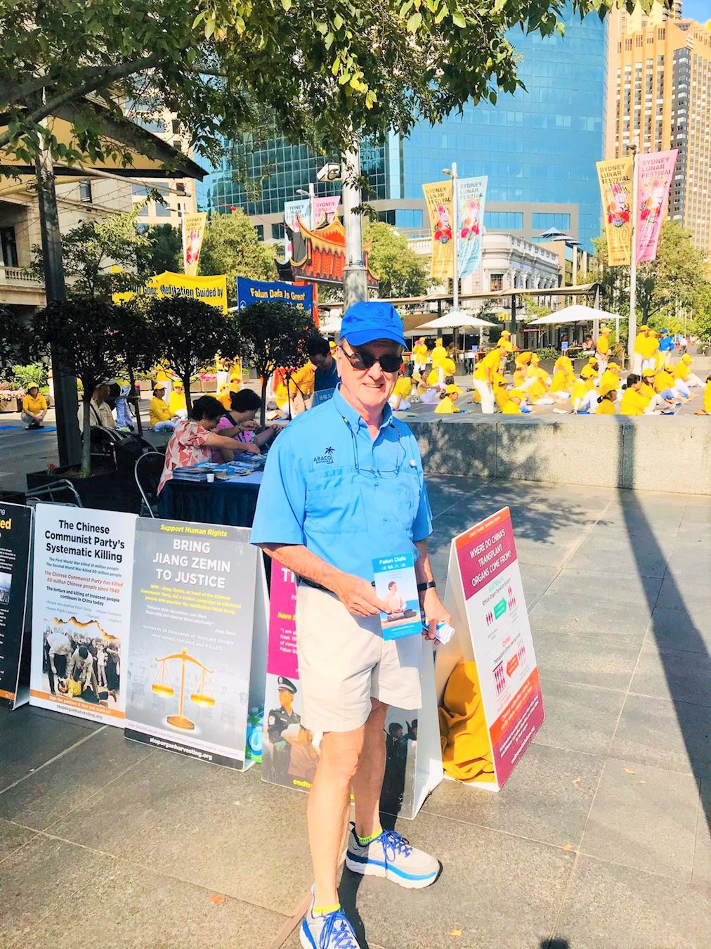 悉尼居民塞尔克(Selke)先生说:“这些年来我见过法轮功,法轮功做的是一件非常了不起的事情,你们非常勇敢。”